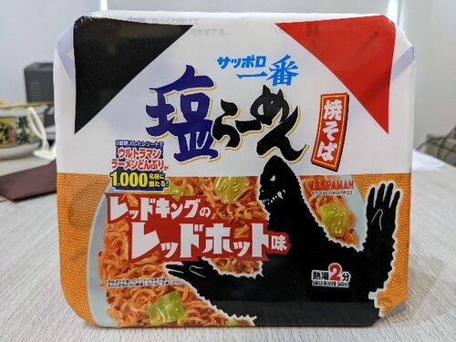 先日スーパーに買い物に行くと気になる新商品が! 「サッポロ一番塩ラーメン焼きそば レッドキングのレッドホット味」なるものが発売されておりました。 レッドホットということは辛い焼きそばなのかな?ということで買ってみることに。 ウルトラマンコラボ…